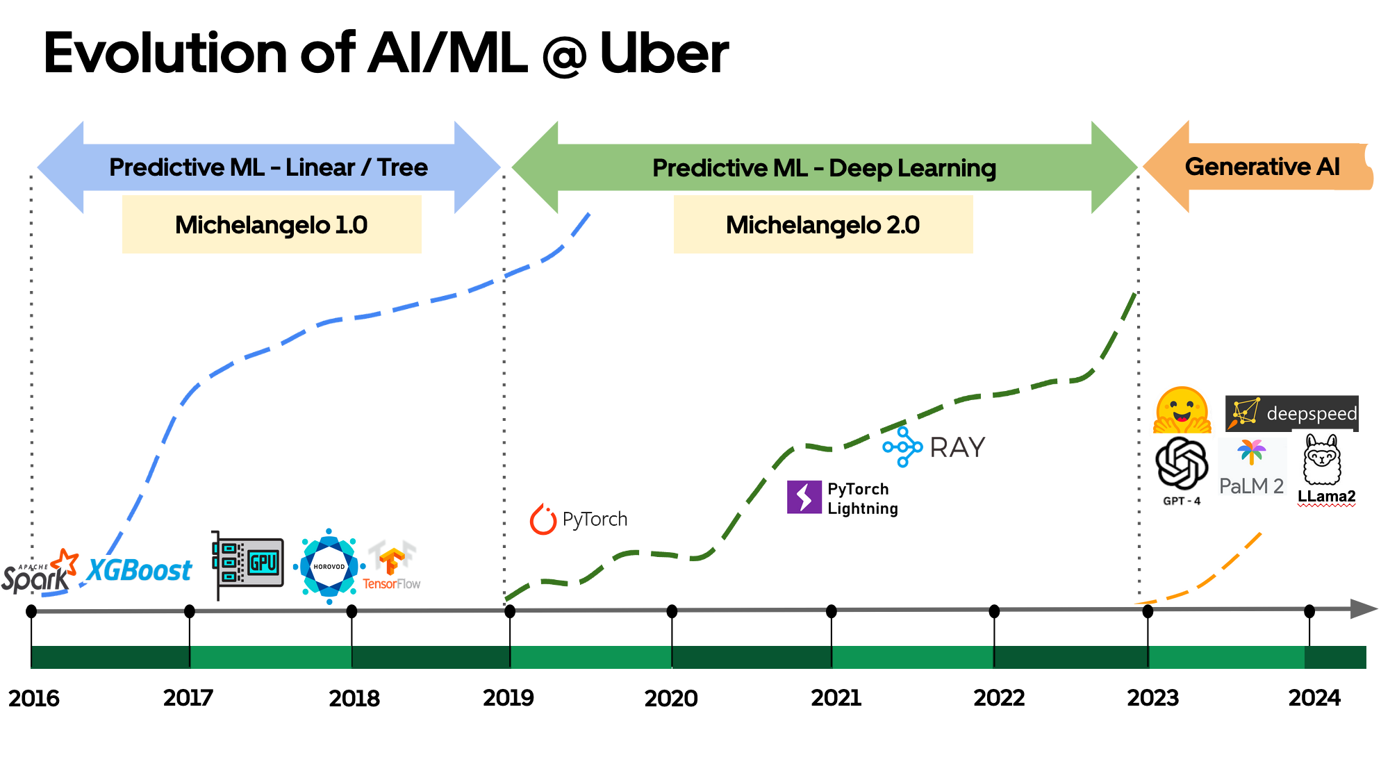 Hereās a quick look at the Evolution of AI/ML @ Uber over the past few years: