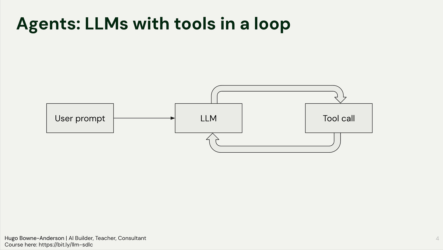 An agent is an LLM calling tools in a loop.