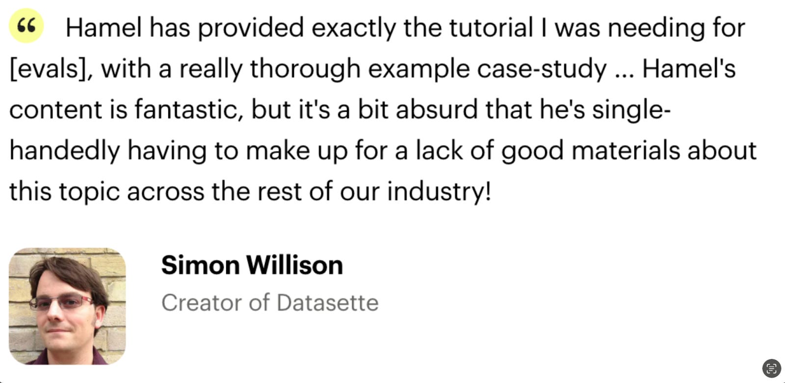 2025 might be the year of agents, but it’s definitely becoming the year of evaluation. Hamel Husain and Shreya Shankar’s hands-on course completely reshaped how I consult, teach, and build AI systems that actually work—and this is the final time they’ll run it live.